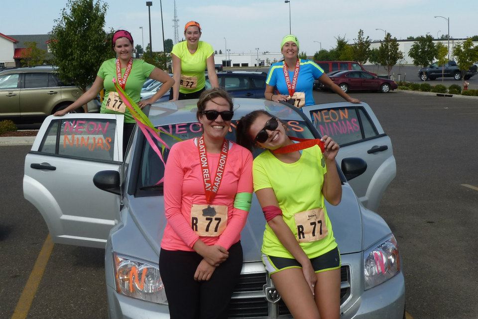 My next race was the Bismarck Marathon Relay and it was a five person race with four friends from there. We had a theme. Neon Ninjas. It was fun and while we weren't speedy we had a good time and for three of my team it was a first race ever.